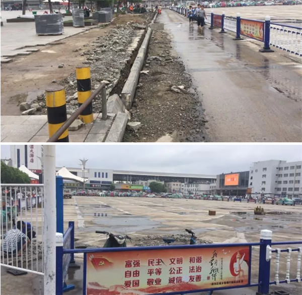 据了解,火车站前广场始建于2006年,距今已有十二年,部分地砖、路面老化,借此改造机会,将广场重新整修一番,更加便于市民出行;在火车站前广场的停车场上,水泥路面也出现了不同程度的破损,此次升级将全面黑化路面、更换护栏、重新规划停车位、形成循环车道;同时,火车站汽车进出站道路原本均为两个车道,已难以满足当前市民出行需求,通过“提档升级”,汽车进站车道将向南拓宽7米,改为4个车道,出站车道也将改为3个车道,方便市民出行。