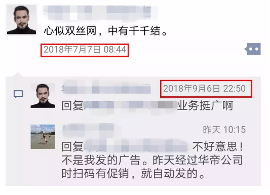 就连微信好友两个月前的朋友圈,也被评论上了广告信息↓