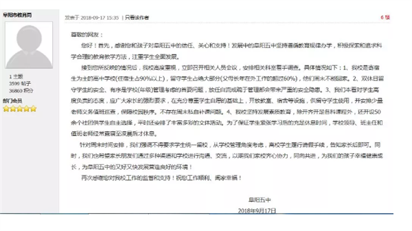 阜阳五中回复: