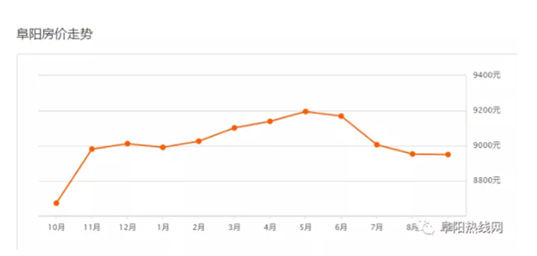 但是从今年下半年开始,阜阳房价出现下跌,并且下跌超过四个月。今年6月份,阜阳住宅均价还在9196元/平米,到了9月份已经跌至8950元/平米,跌幅达2.45%。