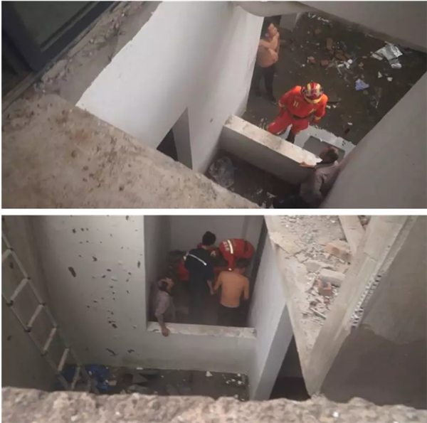 7月11日上午9点半左右,阜阳市阜南县一在建工地上,一位工人在安装水管时,一时不慎跌落到地下室,腰部受伤,动弹不得。
