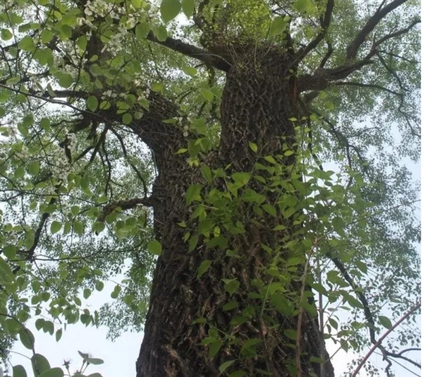下午到谭棚镇北部去看看。第一站是何楼村的古侧柏群,已挂牌。然后向东走,在一个地图上叫郝桥、园子、李宅、庄户的地方,该地方百度地图显示是东张营村,该村有一株木瓜树已挂牌,只不过牌子掉了,在古木瓜树的西南角有一株老梨树和一株白蜡树(疑似),白蜡树当地人叫荆条,可编筐。能长成树(胸围84cm)不知有多少年。那株梨树(胸围96CM)也有七、八十年的历史。在该村的东部,我们发现一株胸围达186cm的丝棉木树,树主人不在家,据说在杨桥街上住。这株丝棉木是我在阜阳看到的第二粗,第一粗是界首市芦村谢楼的丝棉木树,胸围达2米多。没看到有古树保护的牌子。