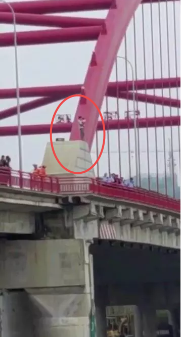 今天(9日21日)下午3点多有许多路过四桥的人看到在颍上四桥,聚集着大量的人群一名男子抱着小孩要跳桥!现场还有119和民警在处理事情发生后,颍河派出所、巡警、交警、消防(119)等相关人员及时赶到现场