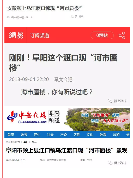 今天,发现朋友圈炸了都在说颍上江口变仙境?原来啊2018年9月4日傍晚6点35分颍上县江口镇乌江渡口处惊现“海市蜃楼”几十层的高楼就这样出现在云层里可以说是非常壮观了图/刘飞这一千年难遇天文奇观被颍上