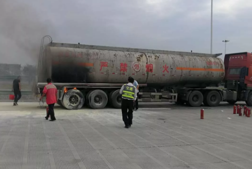 9月5日7时许,一辆拉载粗酚的罐车在三角元服务区(河南往南京方向)轮胎发生自燃经高速交警一大队、服务区、消防队、辖区派出所联合处置已扑灭明火