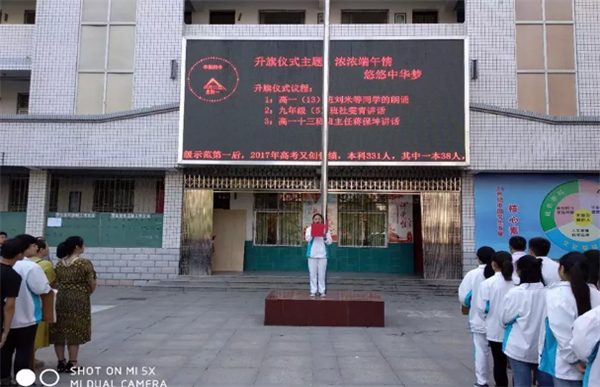 端午节和“中考”同步临近,6月11日早晨,阜阳四中在校园广场举行了以“迎中考”、“端午情”升旗仪式,阜阳四中校长刘杰及全体师生参加了升旗活动。高一(13)班学生代表刘米等同学做了题为“端午感怀”的诗朗